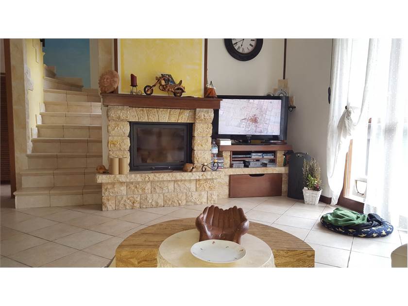Piano Terra: ingresso, soggiorno con camino, cucina abitabile e bagno.